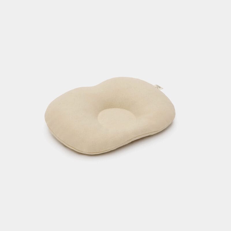 This wool baby pillow features a lowered center as an anti-flat-head pillow and a zipper for easy height and firmness adjustment. Finished with organic fabric; optional washable pillowcase available.