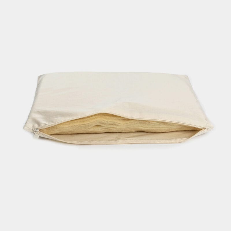 Ontdek ons dunne kussen van biologische wol, ideaal als buikslaper kussen. Lichtgewicht met laag volume voor zachte ondersteuning zonder bulk – perfect voor rug-, buikslapers, kinderen en tieners. Handgemaakt van zuivere, ademende wol voor koele, zweetvrije nachten en een fris slaapoppervlak.